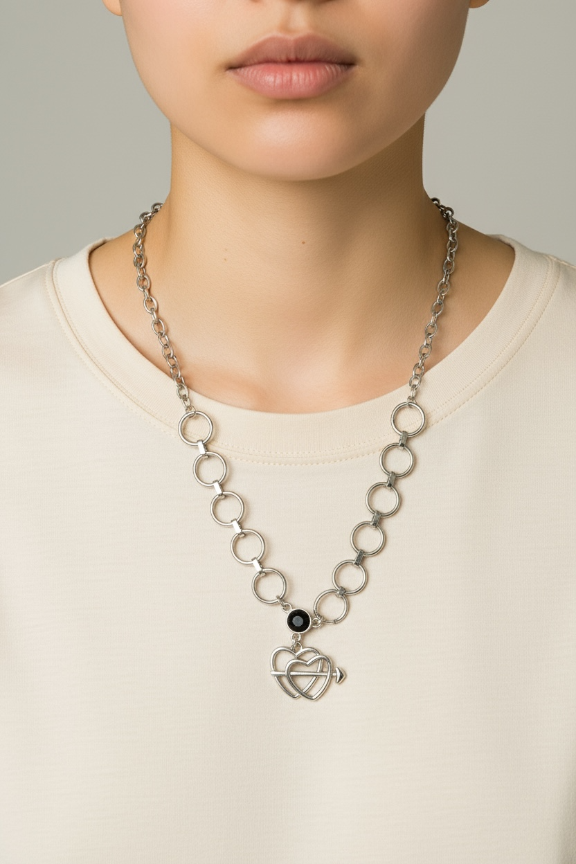 iç içe kalp tasarımlı Gümüş Kaplamalı Zincirli Kolye Gümüş kaplama malzemesiyle üretilmiş, uzun ömürlü ve şık bir görünüm sunar; siyah taş kullanımı sayesinde göz alıcı bir parlaklık ve estetik bir görünüm sağlar; iç içe kalp modeli, zarif tasarımıyla dikkat çeker ve her türlü kıyafetle uyum sağlar Ürün temizliğini pamuklu bir bez ile yapabilirsiniz . ; Kimyasal maddelerle teması olmaması dahilinde kararma yapmaz . ; Anti Alerjiktir ciltde herhangi bir kızarıklık vb. olumsuz etki oluşturmaz . ; İş günleri 24 saat içinde kargoda .