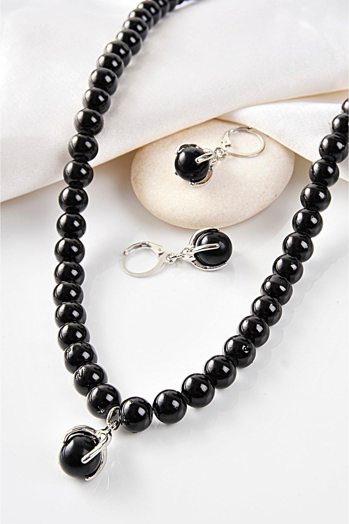 Özel Tasarımlı Siyah Inci Ve Zirkon Taşlı Kolye Küpe Takı Set