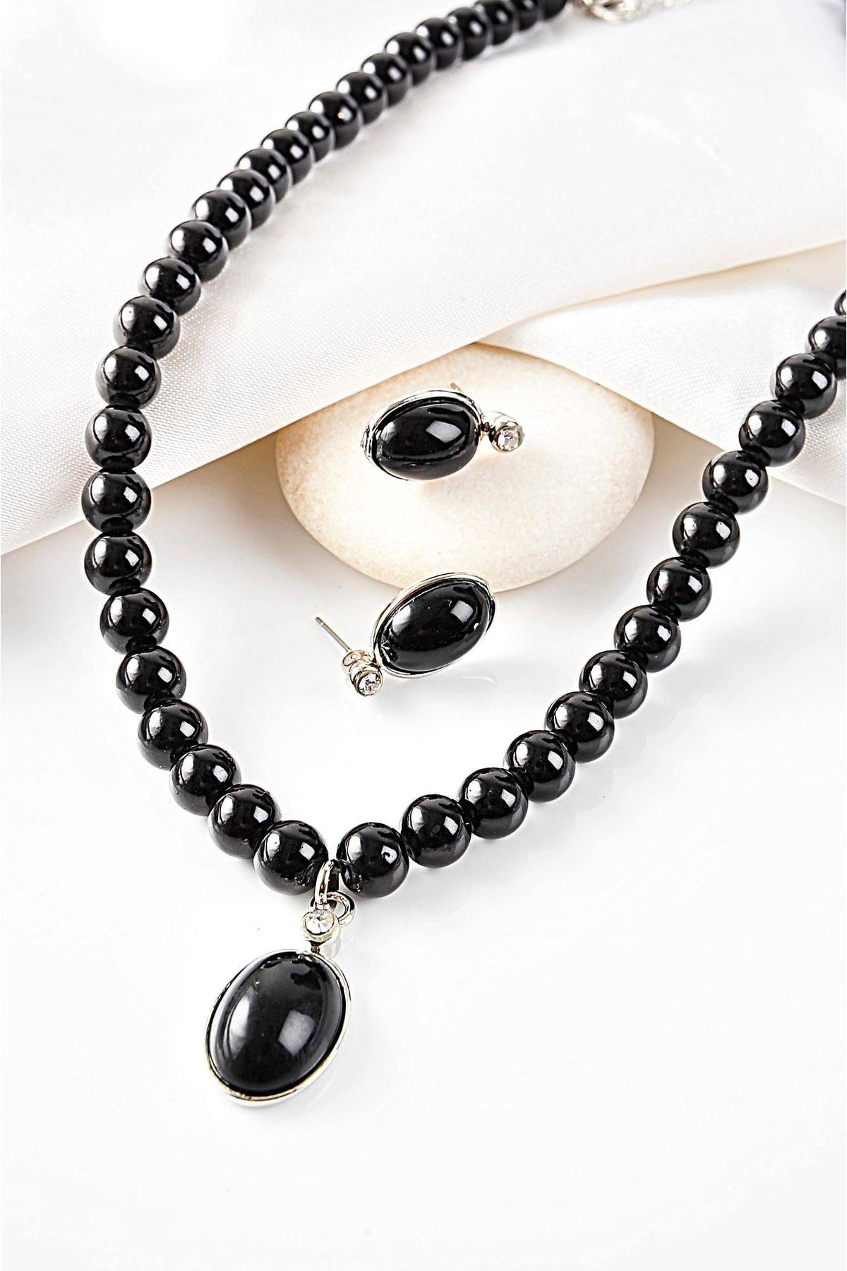 Özel Tasarımlı Siyah Inci Ve Zirkon Taşlı Kolye Küpe Takı Set