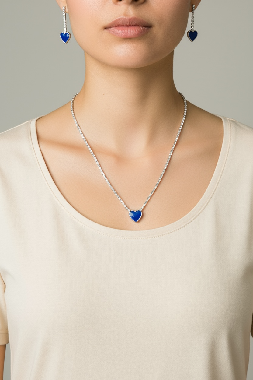 kalp tasarımlı Gümüş Kaplamalı stras Kolye Gümüş kaplama malzemesiyle üretilmiş, uzun ömürlü ve şık bir görünüm sunar; stras taş kullanımı sayesinde göz alıcı bir parlaklık ve estetik bir görünüm sağlar; mavi kalp modeli, zarif tasarımıyla dikkat çeker ve her türlü kıyafetle uyum sağlar Ürün temizliğini pamuklu bir bez ile yapabilirsiniz . ; Kimyasal maddelerle teması olmaması dahilinde kararma yapmaz . ; Anti Alerjiktir ciltde herhangi bir kızarıklık vb. olumsuz etki oluşturmaz . ; İş günleri 24 saat içinde kargoda .