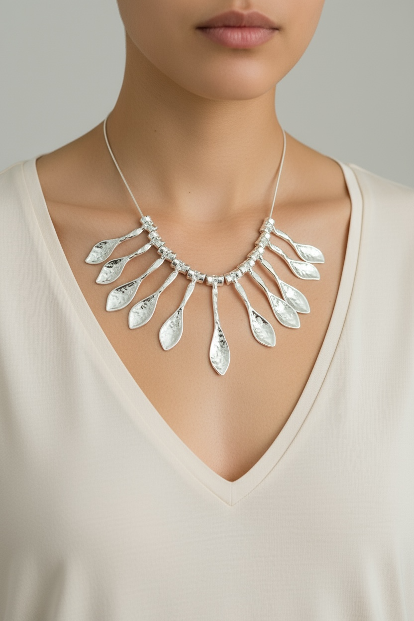 Yaprak tasarımlı Gümüş Kaplamalı Zincirli Kolye Gümüş kaplama malzemesiyle üretilmiş, uzun ömürlü ve şık bir görünüm sunar; parlak görünümü sayesinde göz alıcı ve estetik bir görünüm sağlar; yaprak modeli, zarif tasarımıyla dikkat çeker ve her türlü kıyafetle uyum sağlar Ürün temizliğini pamuklu bir bez ile yapabilirsiniz . ; Kimyasal maddelerle teması olmaması dahilinde kararma yapmaz . ; Anti Alerjiktir ciltde herhangi bir kızarıklık vb. olumsuz etki oluşturmaz . ; İş günleri 24 saat içinde kargoda .